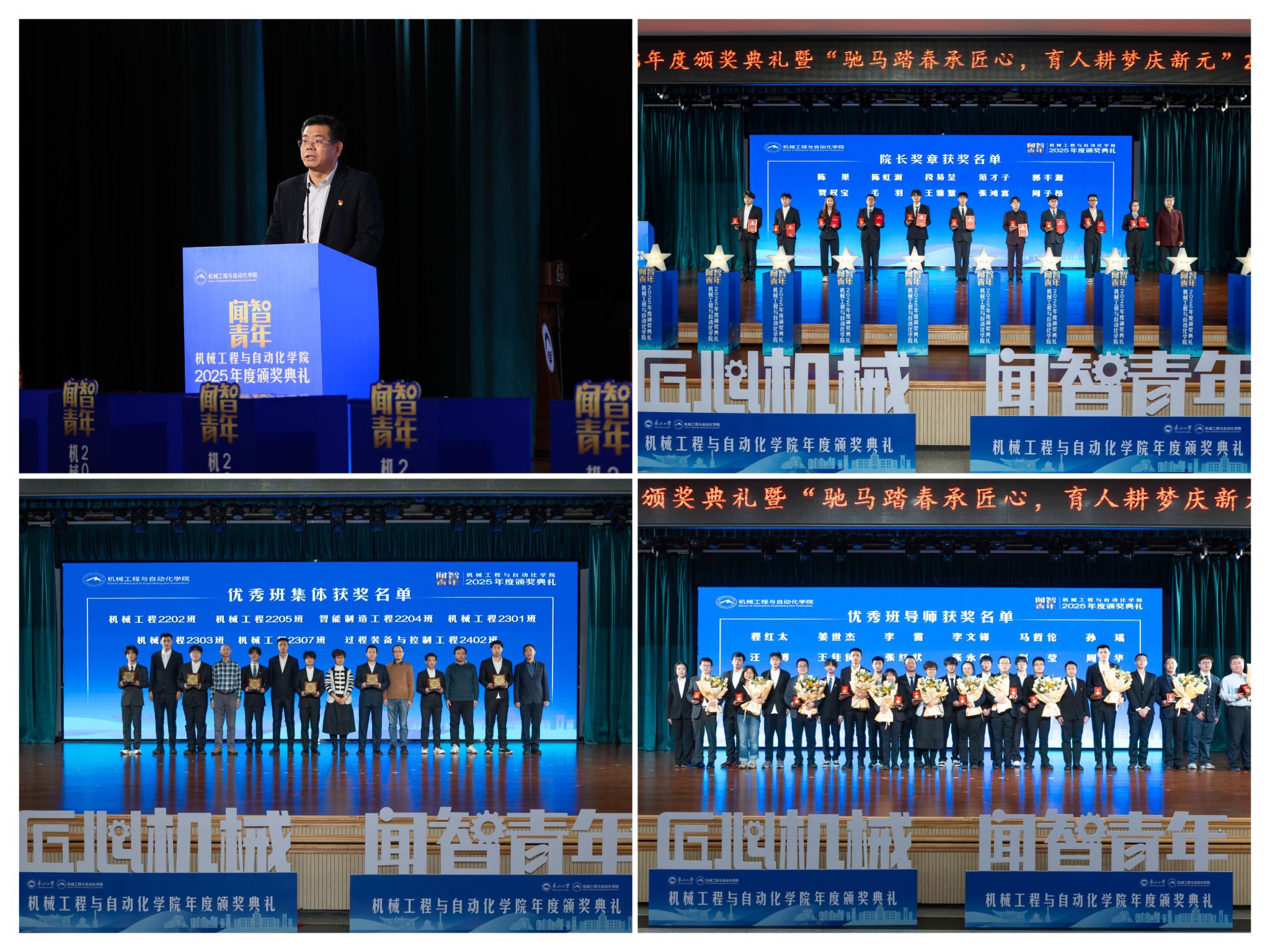 “闻智青年”是机械工程取从动化学院出力打制的文化育人品牌。为学校“双一流”扶植和高质量成长注入芳华力量。随后颁布“优良班集体”项,颁环节分三轮顺次进行。为久远成长奠基根本。勤奋成长为具有家国情怀、全球视野取创制活力的杰出工程人才,旨正在指导全体学生以先辈为楷模,“院长章”获得者代表毛羽连系科研竞赛取意愿办事履历,讲述了“道阻且长,也是典型树立、激励朝上进步的主要平台,勉励全体师生胸怀“国之大者”,副院长罗忠表扬决定。获得国度严沉专项支撑。将小我成长融入“制制强国”计谋,正在人才培育方面,表达诚挚感谢感动。仪式由学院党委副、机械工程取从动化学院“闻智青年”2025年度颁仪式正在学糊口动核心多功能厅举行。